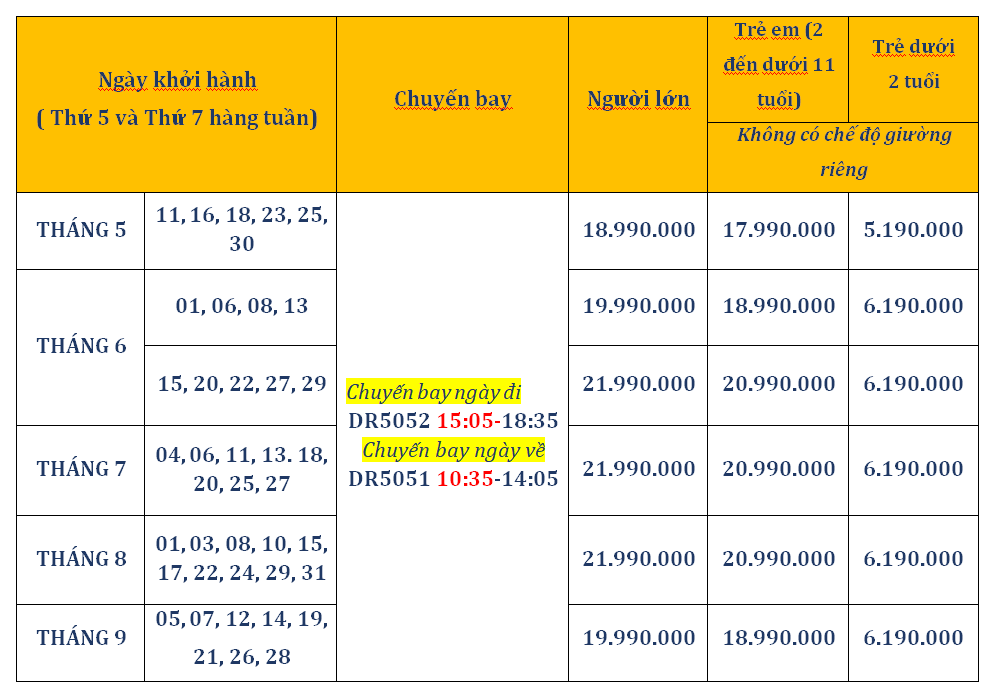 - Do các chuyến bay phụ thuộc vào các hãng Hàng Không nên trong một số trường hợp giờ bay có thể thay đổi mà không được thông báo trước.