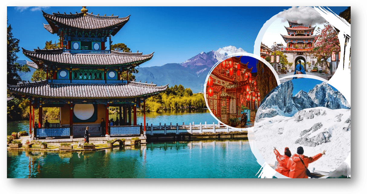 - Núi Tuyết Ngọc Longcách trung tâm phố cổ Lệ Giang về phía Bắc, quanh năm tuyết phủ trắng bao phủ một khu vực rộng lớn giống như con rồng lớn nên được gọi là “Ngọc Long”. Nơi đây còn được so sánh với “Thụy Sĩ Á Đông” như rặng Pyrenes (ngọn núi nổi tiếng tại biên giới Pháp và Thụy Sỹ). Đoàn đi cáp treo lớn lên núi với độ cao 4600m và chụp ảnh lưu niệm.