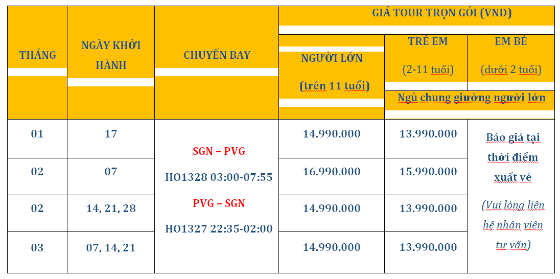 - Không nhận khách có thai dưới 3 tháng và từ 5 tháng trở lên tham gia các tour du lịch nước ngoài vì lí do an toàn cho khách. Vui lòng liên hệ nhân viên tư vấn để thêm thông tin.