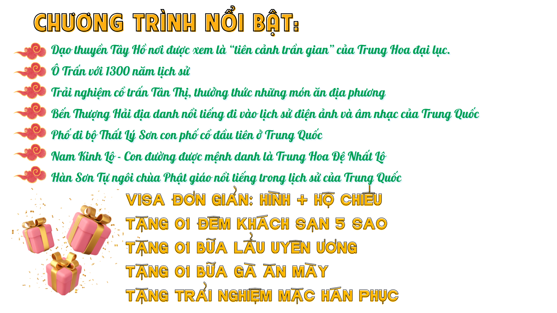 - Tặng 01 bữa gà ăn mày + 01 bữa lẩu + trải nghiệm mặc hán phục + vé dạo thuyền Tây Hồ